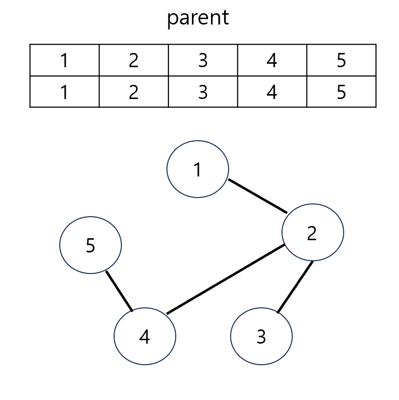각 정점이 어떤 집합에 속하는지를 기록할 parent 배열입니다.
