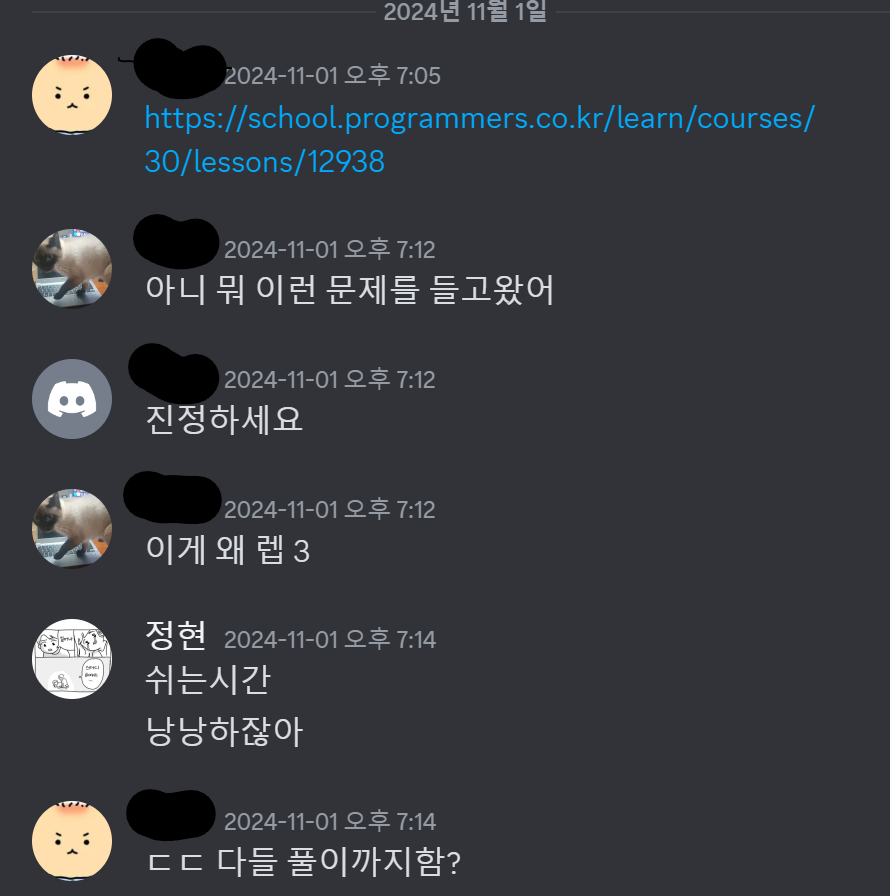 여담으로 문제를 정하는건 기존과 동일하게 한명씩 돌아가며 정했고, 간혹 이슈가 있기도 했어요 ㅎㅎ...