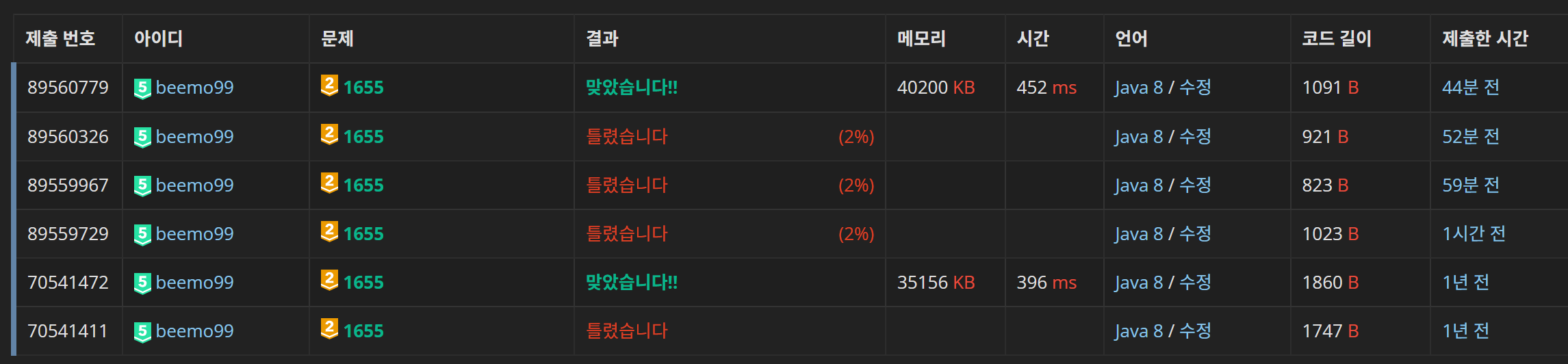 두번째 풀이임에도 불구하고, 명제를 세우고 검증을 하는데 조금의 실수가 있었는데