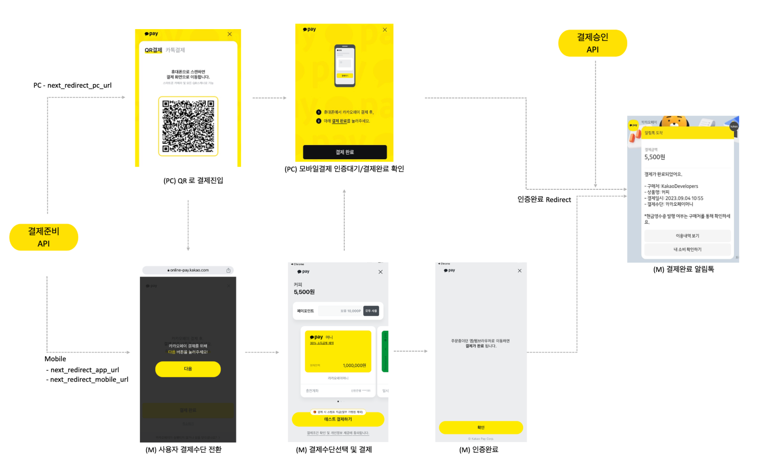 위 모식도를 확인해보면 '결제준비 API'과 '결제승인 API' 두 개의 API로 나뉘어져 있는걸 확인할 수 있다.