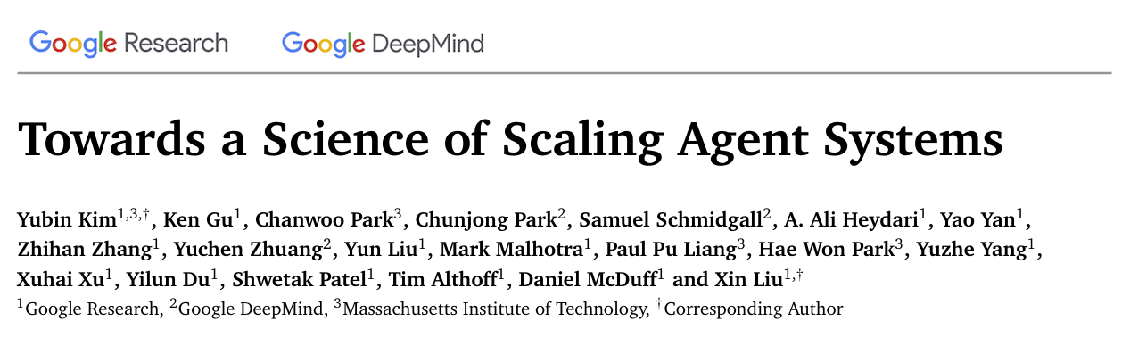 본 포스팅은 해당 논문(Towards a Science of Scaling Agent Systems)에 대해 NotebookLM 및 기타 LLM 모델을 사용하여 번역 및 정리하여 글로 옮긴 내용이며 다소 올바르지못한 내용이 포함되어 있을 수 있으니 참고부탁드립니다.