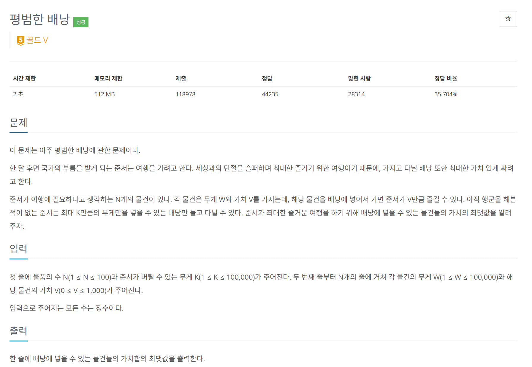 - 아래는 0-1 Knapsack과 관련하여 백준의 기초적인 문제 풀이