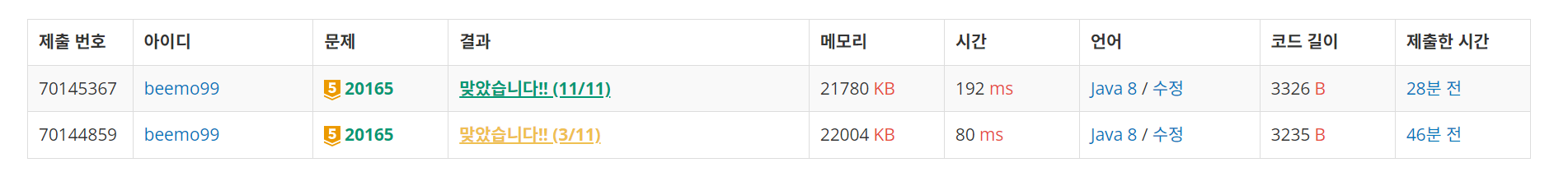 - 이 후 반례를 찾았지만 없어서 직접 반례를 만들어보며 트라이해보는 과정에서 분명 공격자의 점수가 11이 나와야 하는데 15가 나오는 반례를 찾아서 겨우 풀이했다!…