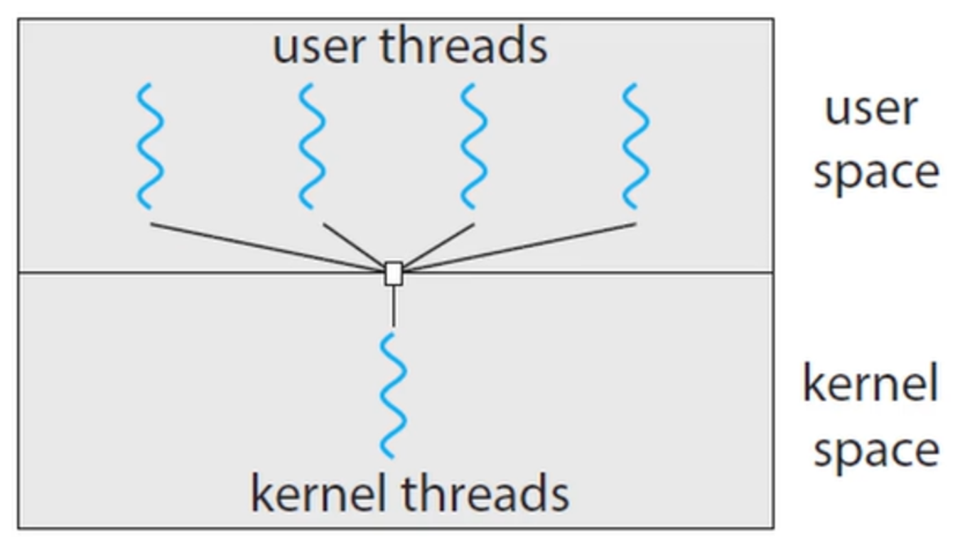 - 단점으로는 User Thread 한 개당 Kernel Thread(OS가 관리해서 속도가 느림)를 같이 만들어야 해서 overhead가 굉장히 큼.