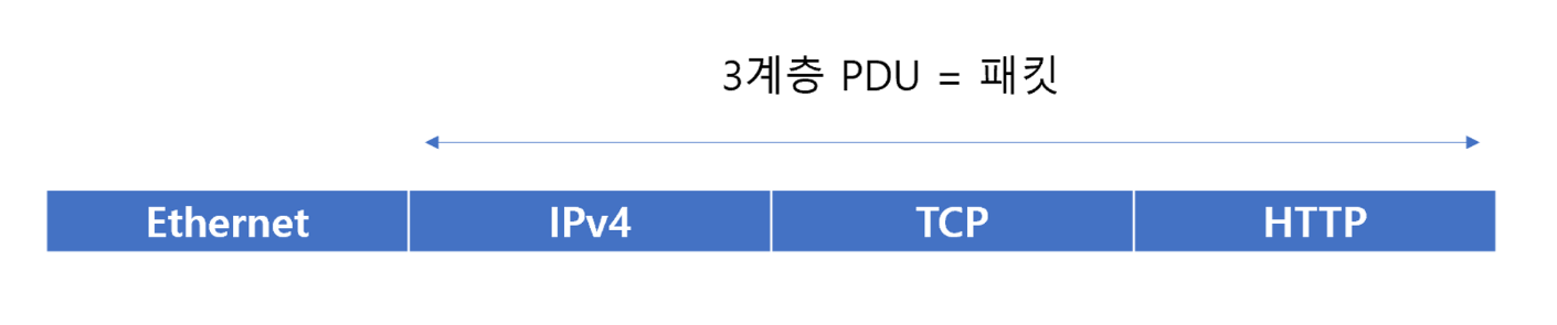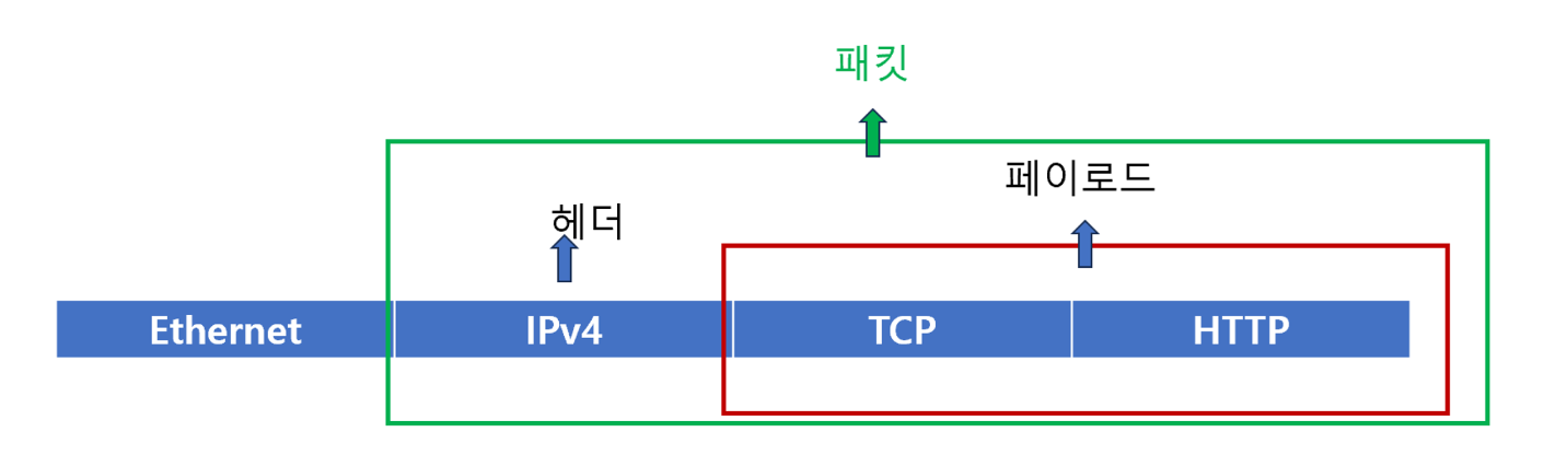 위의 그림과 같이 IPv4를 헤더로 상위 계층인 TCP와 HTTP를 페이로드로 한 것을 크게 패킷으로 묶는 것도 가능함.