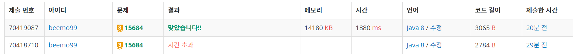 - 추가적으로 이번 풀이의 경우 1880ms로 상당히 느린 시간복잡도를 가진 풀이였는데 최적화에 대해서 추후에 추가해보면 좋을 것 같음!