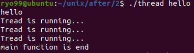 | #include <stdio.h> #include <stdlib.h> #include <pthread.h> #include <unistd.h> //생성된 쓰레드가 실행할 코드 void *thread_function(void *arg){ char *p = malloc(sizeof(char) * 20); strcpy(p, (char *)arg); printf("%s\n", p); for(int i=0; i<3; i++){ sleep(2); puts("Tread is running..."); } } int main(int argc, char *argv[]) { int state; void *t_return; pthread_t tid; state = pthread_create(&tid, NULL, thread_function, (void *)argv[1]); //쓰레드 생성 if(state != 0) { perror("Thread create error : "); exit(1); } pthread_join(tid, NULL); //동기화 puts("main function is end"); return 0; } |