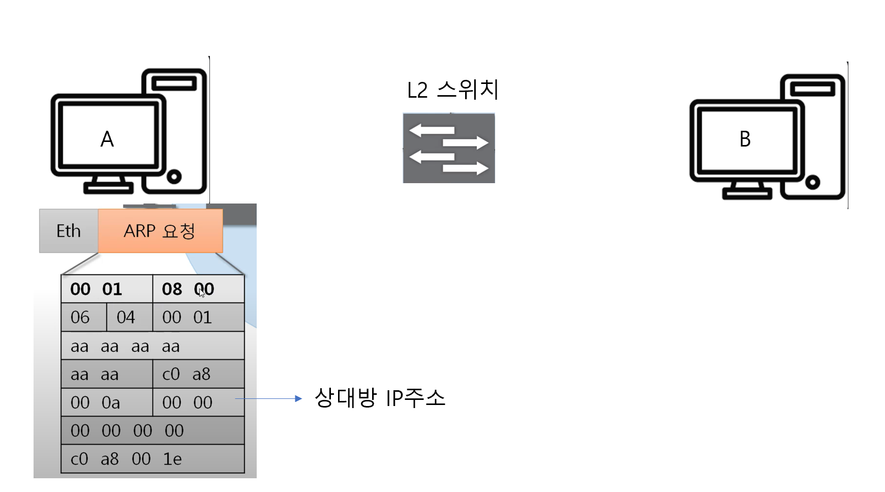 상대방의 MAC주소를 모르는데 어떻게 상대방에게 ARP 요청을 보내는가에 대해서는