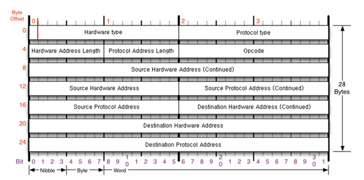 총 28Byte로 Ethernet 프로토콜(20Byte)보다 많은 구조를 가짐