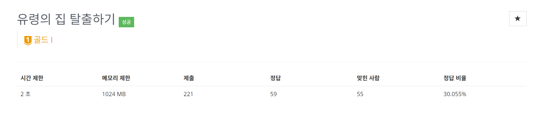 첫 4% 틀렸습니다는 방문체크 배열을 int배열을 사용해 한 공간에 대해서는 여러번 방문할 수 없다라는 개념으로 접근했기 때문에 틀림. >> 방문체크 문제