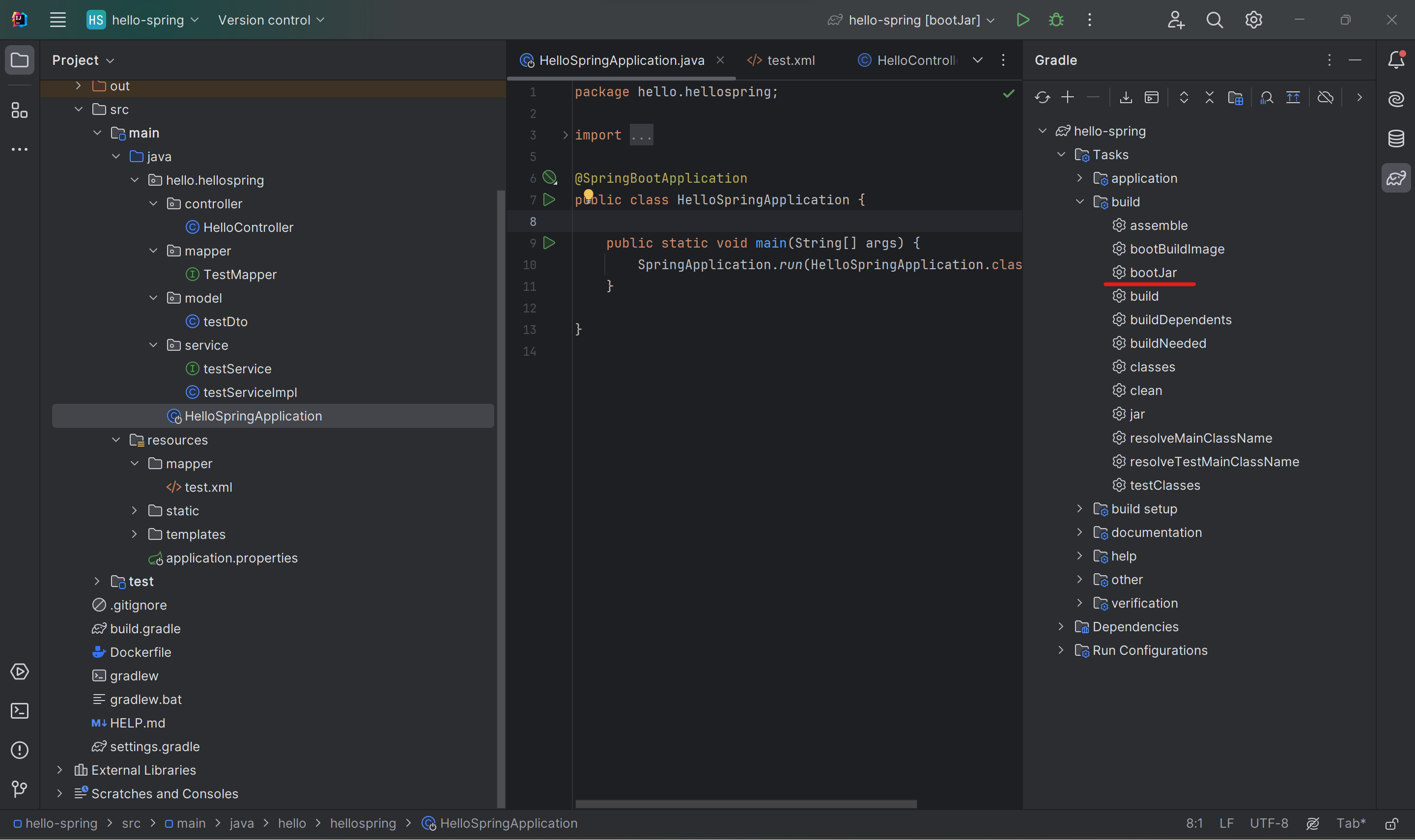 우선 스프링부트로 구현한 웹서버 프로그램을 도커 컨테이너화를 시키기 위해서 Jar파일을 생성해야함.