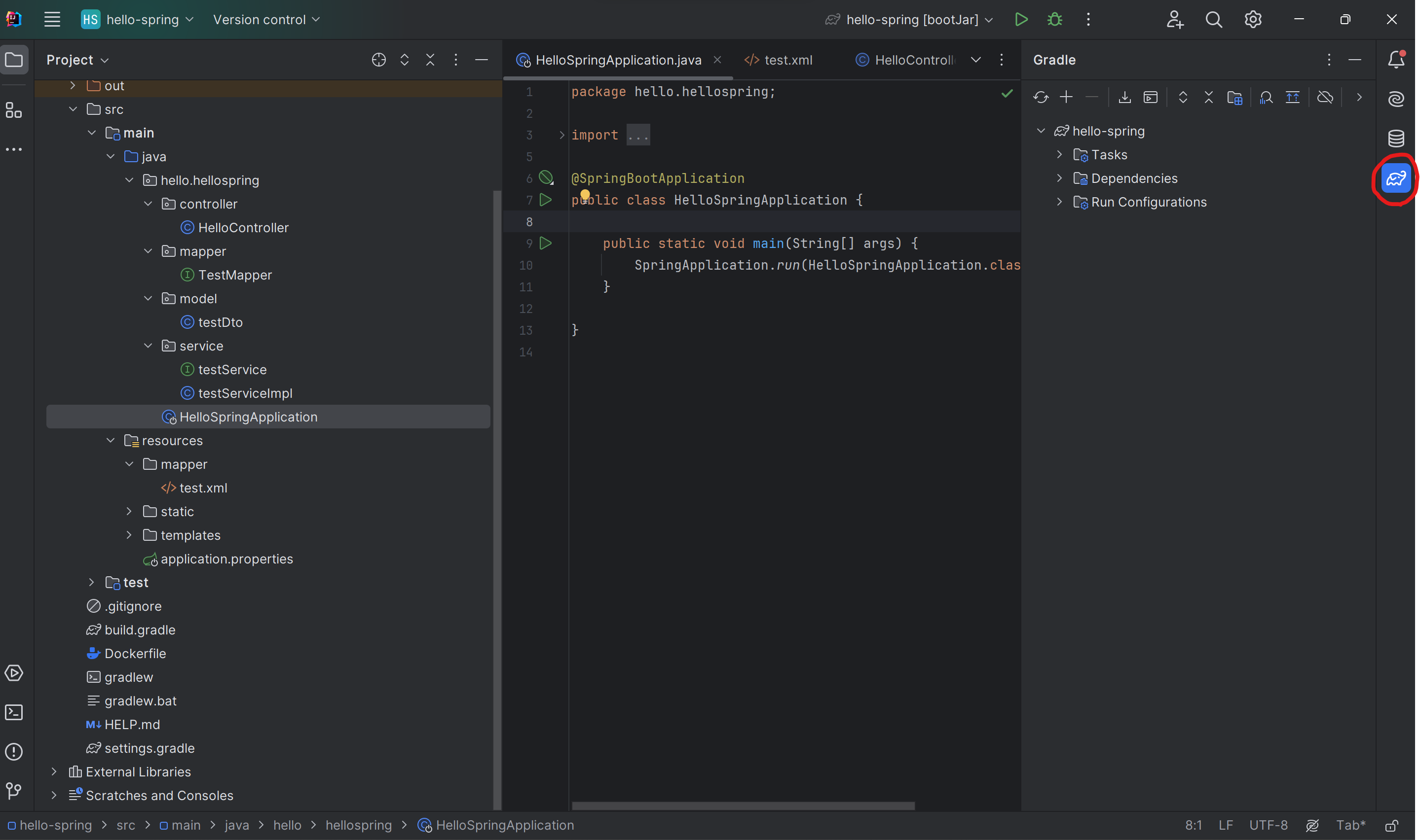 1. 인텔리제이 우측 상단 코끼리 모양 Gradle 클릭 후 Tasks 클릭