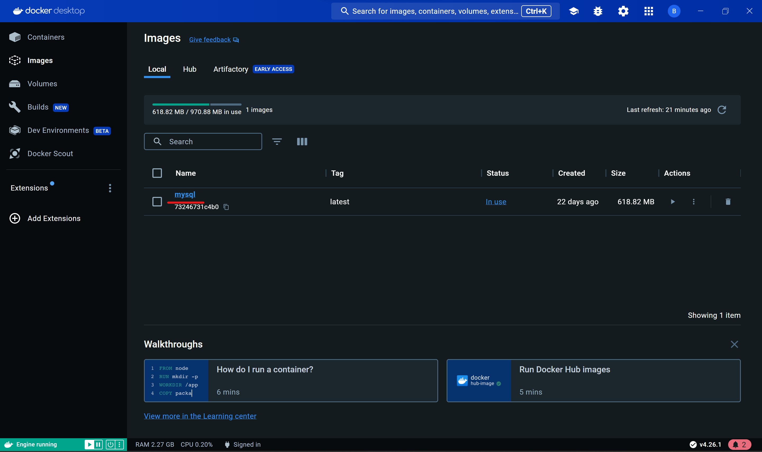 Docker Desktop에서 이미지를 잘 가져왔는지 확인.