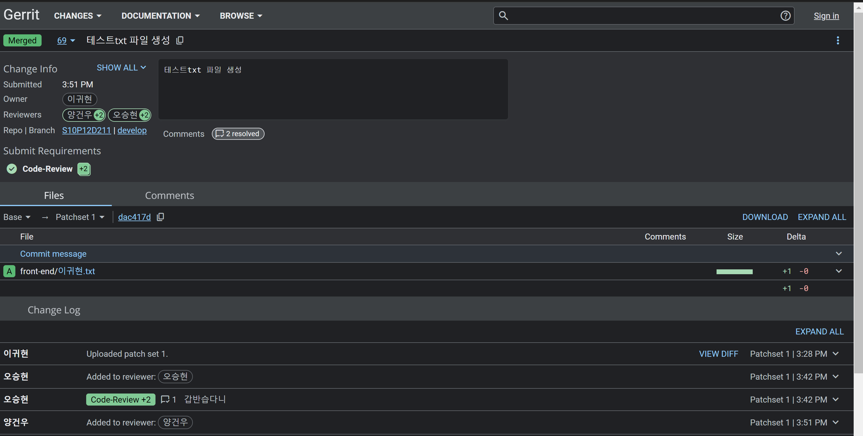 1. Gerrit을 통해 Commit 10개에 대한 코드 리뷰가 OPEN됨.