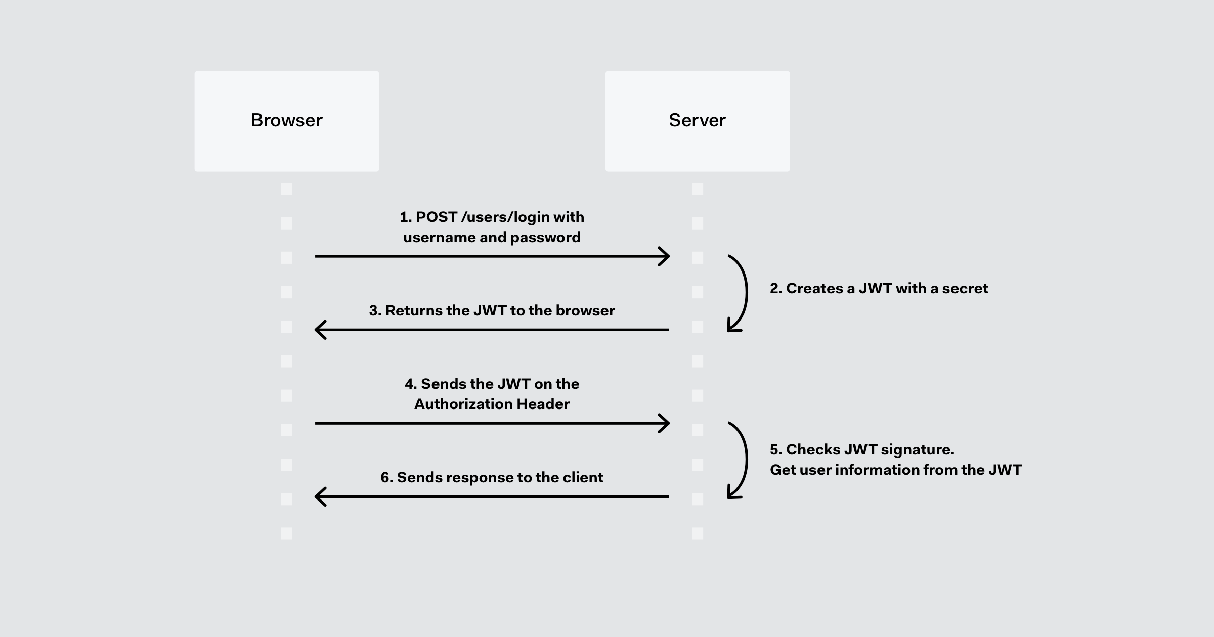 서버의 보호된 경로는 Authorization 헤더에서 유효한 JWT를 확인하고, 있는 경우 사용자를 허용합니다.
