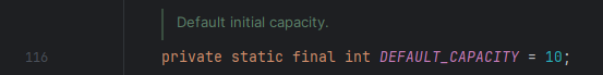 예로 원래 배열의 길이가 10이였다면 새로운 배열의 길이(newCapacity) = 10 + (10/2) = 15가 됩니다.