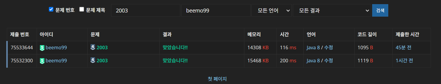 백준에서 두 가지 풀이로 제출을 해보면 시간복잡도가 크게 차이가 난다는걸 알 수 있습니다.