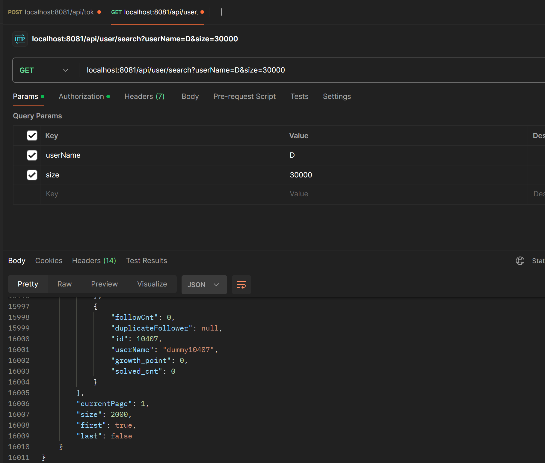 size를 30,000을 주었지만 위 포스트맨의 결과를 확인해보면 2000으로 되어있는걸 뒤늦게 확인하여 이유를 찾아본 결과 다음과 같은 문제가 있었습니다.