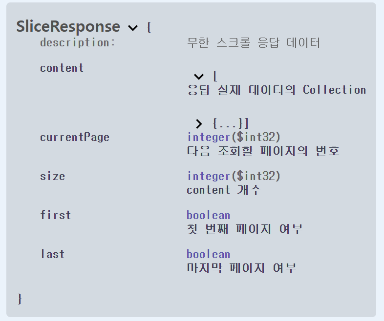 - hasNext의 경우 Slice를 적용시킬 경우 다음 데이터의 유무를 나타냅니다.