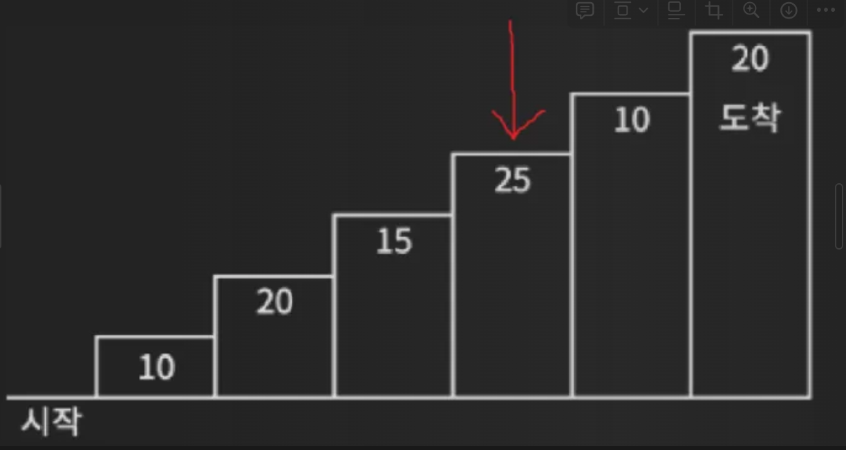 i번째 계단을 통해서 다음 i이후의 값을 고려하는 것이 아닌,